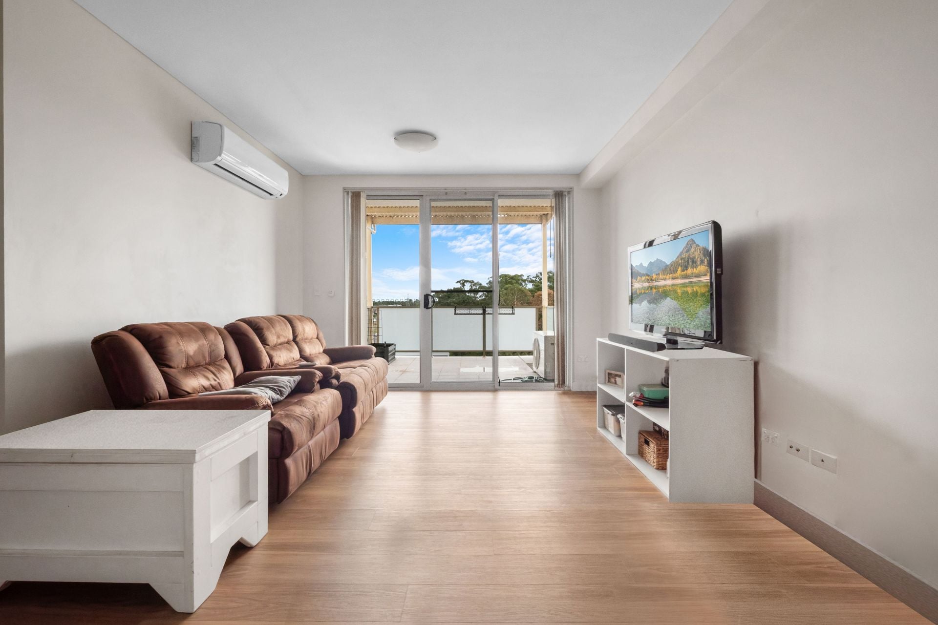 ✔ Air-conditioned open-plan living flowing onto a large balcony with Blue Mountains views
